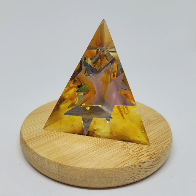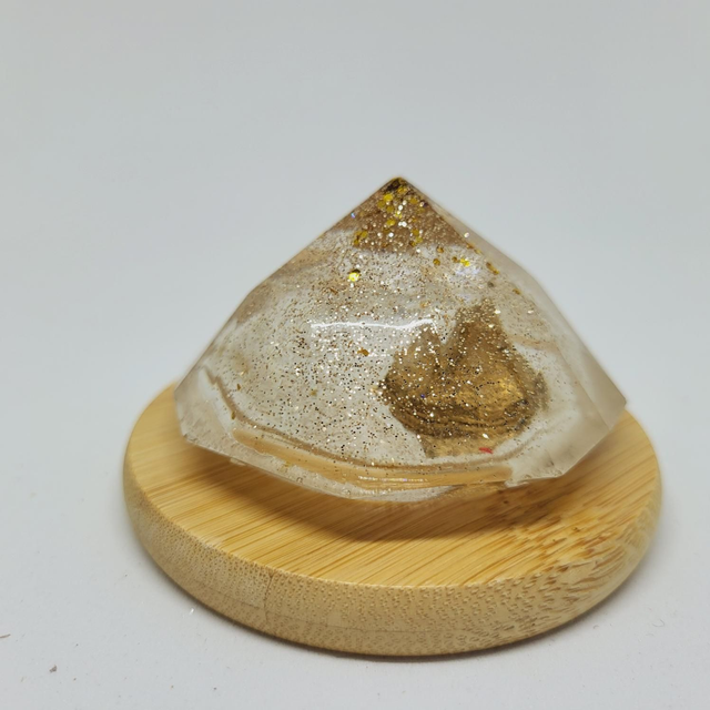 PRESSE-PAPIER PYRAMIDE GRISE ET TRANSPARENT AVEC DES PAILLETTES