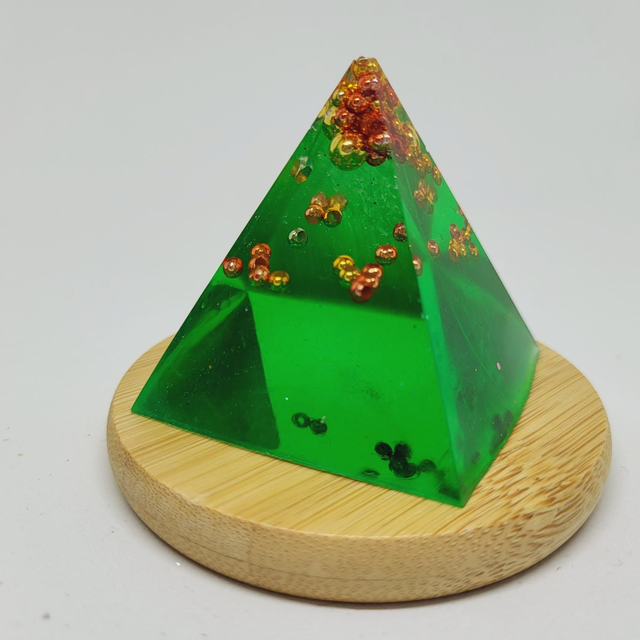 PRESSE-PAPIER PYRAMIDE VERTE AVEC PERLE DORE